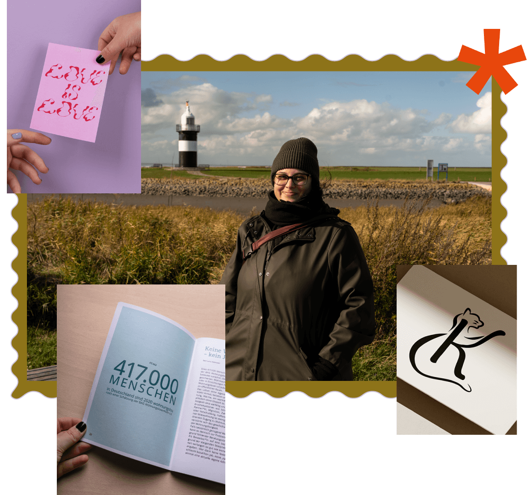Hej, ich bin Vanessa (sie/ihr), studierte Kommunikationsdesignerin aus Hamburg und arbeite Remote in ganz Deutschland mit verschiedensten Branchen zusammen. Schon in meiner über zweijährigen Anstellung als Produktfotografin und Grafikdesignerin habe ich die üblichen Design- und Herstellungswege hinterfragt. Dadurch war mir 2021 mit der Gründung des meer.studios klar, dass ich einen anderen Weg gehen möchte. Schritt für Schritt zu mehr nachhaltig-sozialem Design für mutige und diskriminierungssensible Menschen, die eine Veränderung wollen.